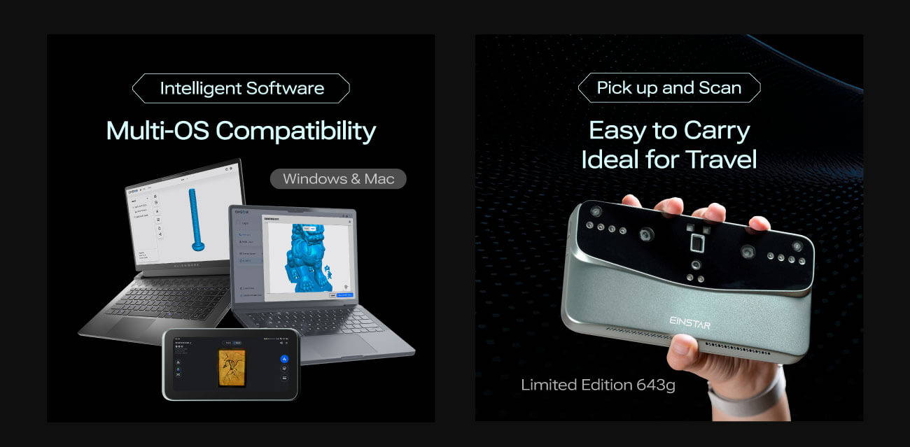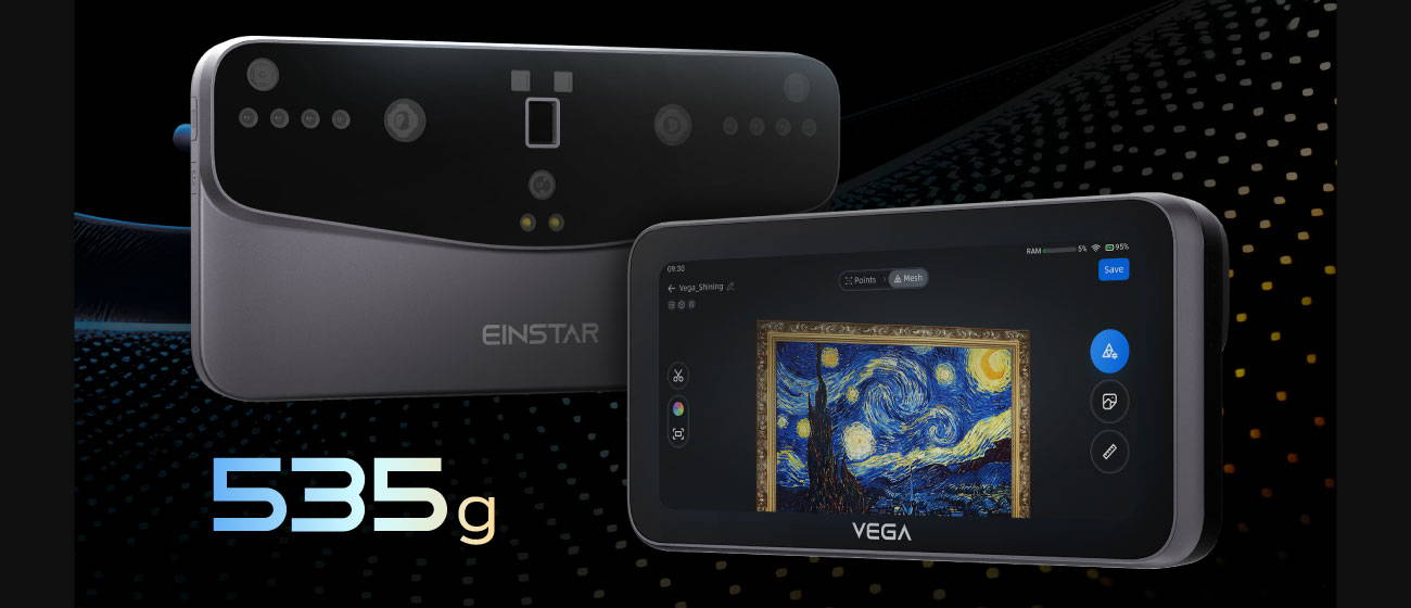 The Einstar VEGA is a consumer-grade affordable all-in-one 3D scanner, bringing the quality of Shining3D to the consumer market, with this pocket-size standalone handheld 3D Scanner, at an outrageously low price.